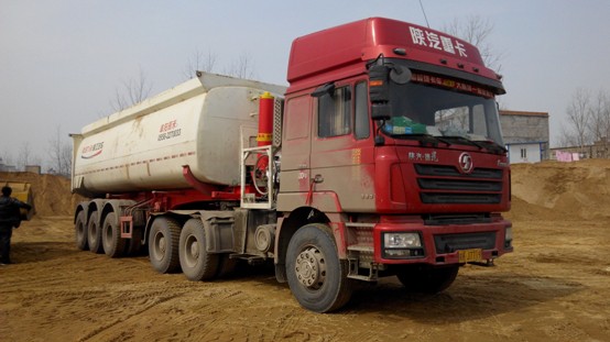 2014年3月11日,在安徽省合肥市渝皖汽車燃?xì)饪萍加邢薰就瓿蓸榆嚫难b。陜汽德龍,牌照:皖KJ7719,發(fā)動機:濰柴WP12.380E32,車自重(帶車廂):21噸,每天空車從安徽省阜陽市到河南省淮濱縣拉沙子,一個來回大約150公里,每天跑600公里,載重40噸沙子。